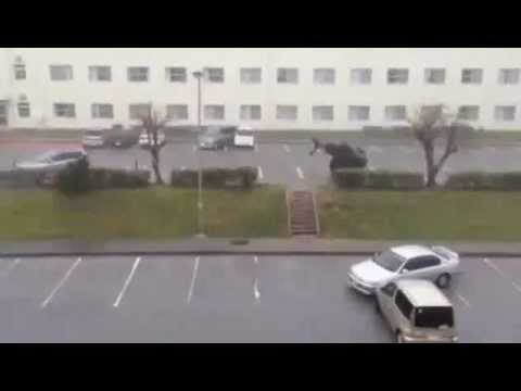 Um vídeo amador captou a força da natureza em Okinawa: ventos irresistíveis arrastam um carro pelos ares.